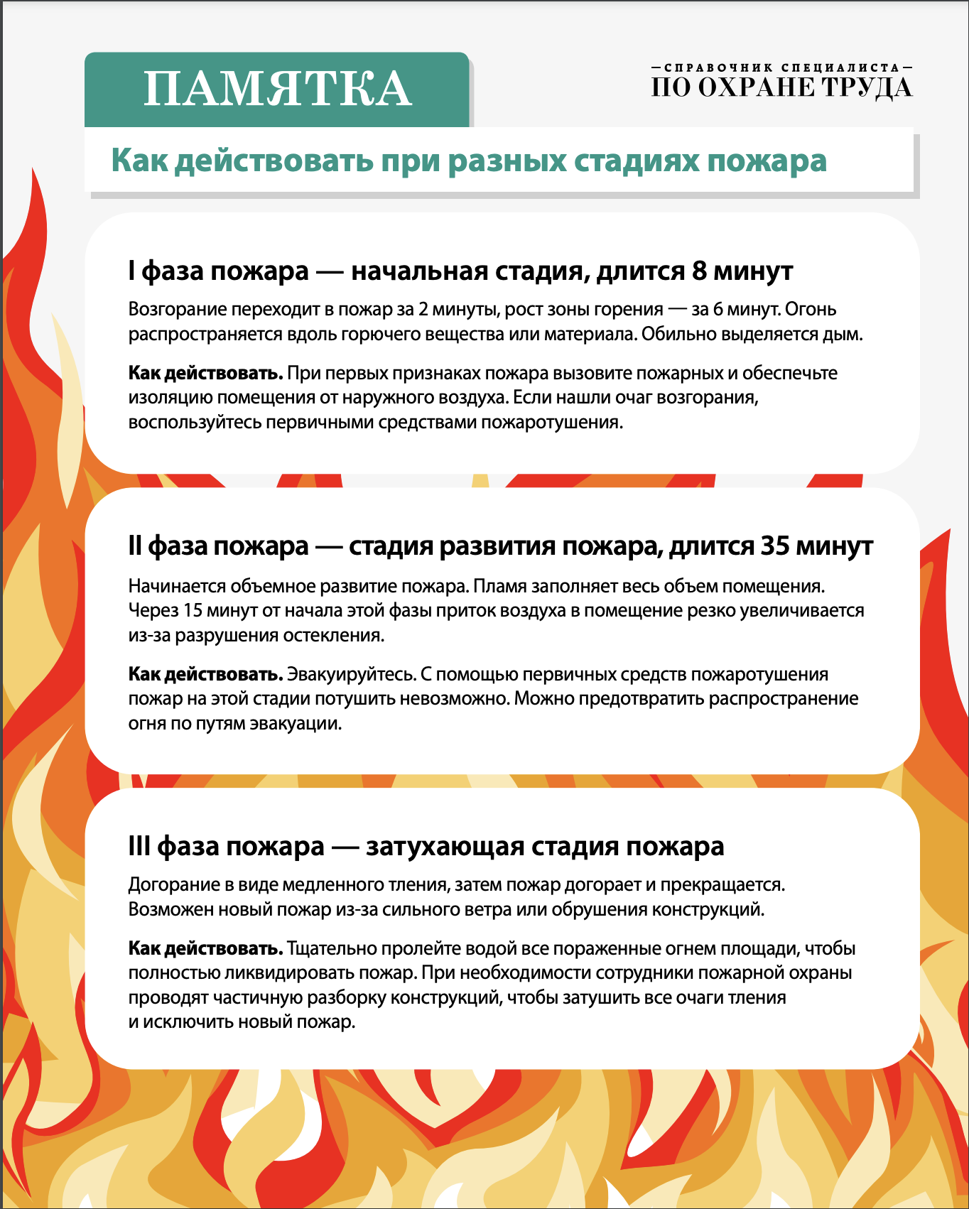 Как действовать при различных стадиях пожара